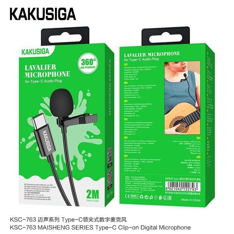 ✅ مايكروفون سلكي بمنفذ تايب سي (Type-C) بطول 2 متر من ماركة KAKUSIGA العالمية.