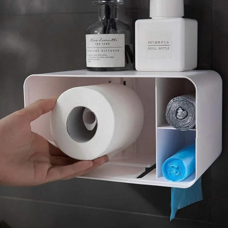 منظم حمام، تجمع بين محارم التواليت وأكياس القمامة، مضادة للماء واجهة يظهر من خلالها المحتوى، شكل مرتب وعملي