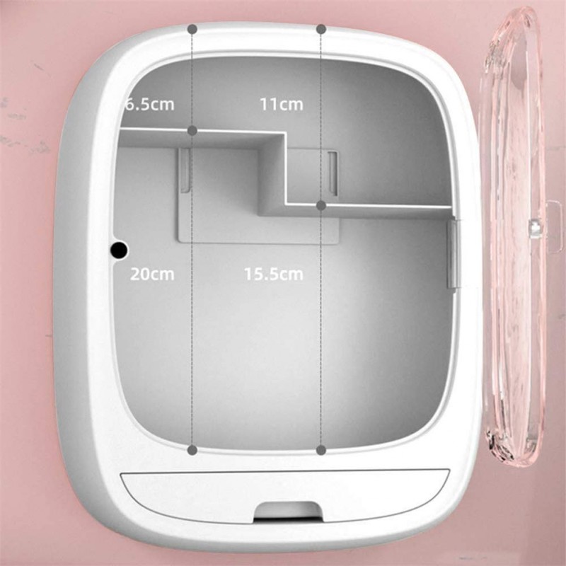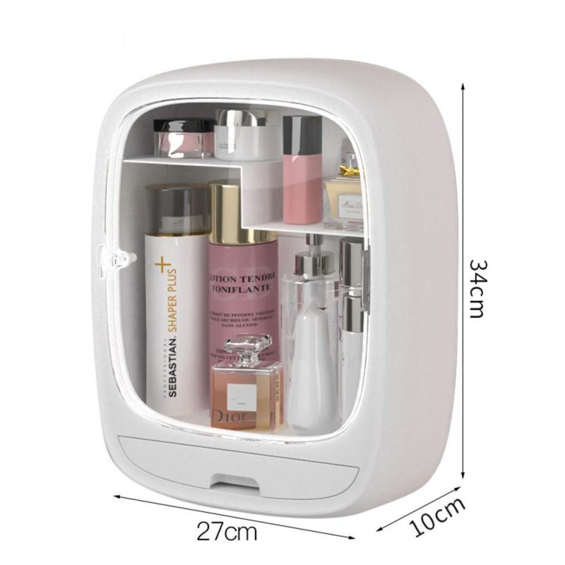 بشكل جيد. مزين بأغطية وأدراج شفافة ، يحمي مستحضرات التجميل الخاصة بك