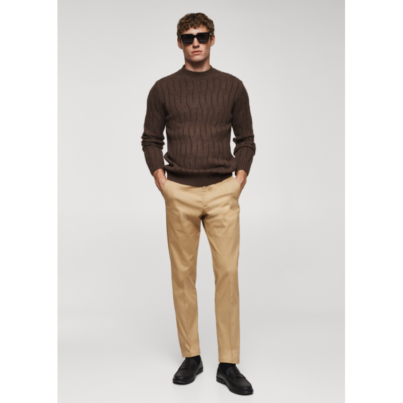 امنح إطلالتك لمسة من الأناقة العملية مع هذا البنطال الرجالي التشينو بقصّة Slim Fit من Mango بلون البني المتوسط (Medium Brown)، خيار مثالي للرجل العصري الذي يبحث عن التوازن بين الراحة والمظهر الأنيق في مختلف المناسبات.