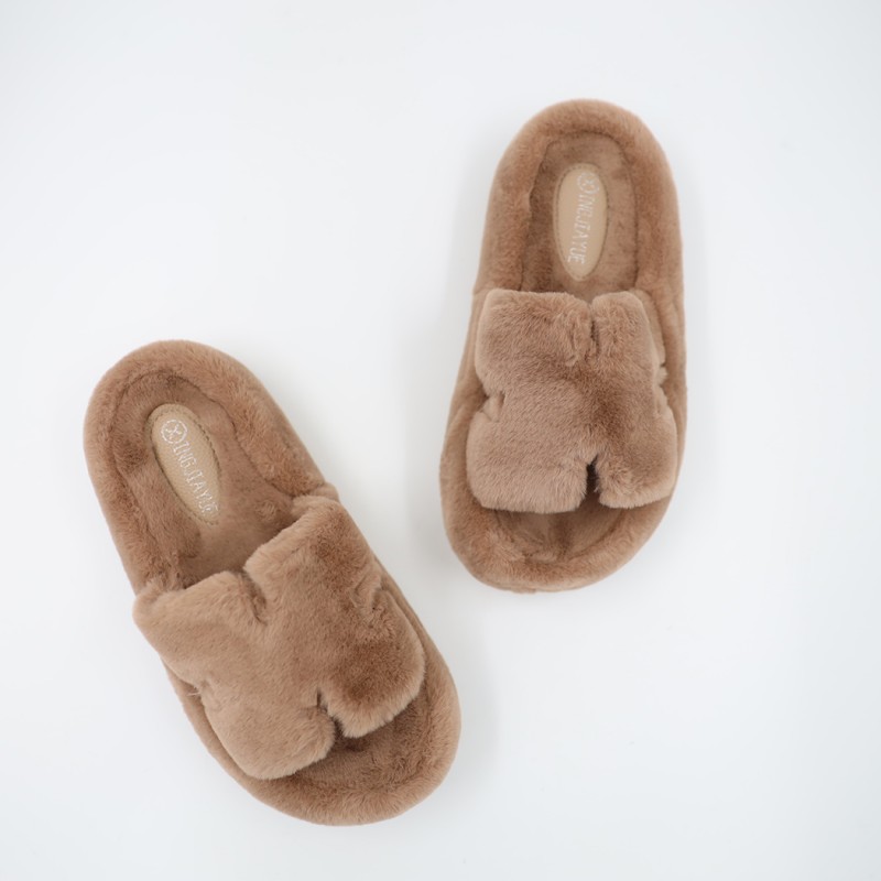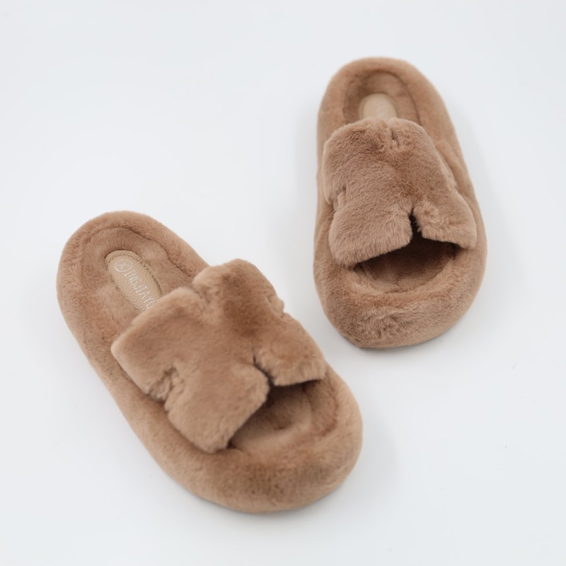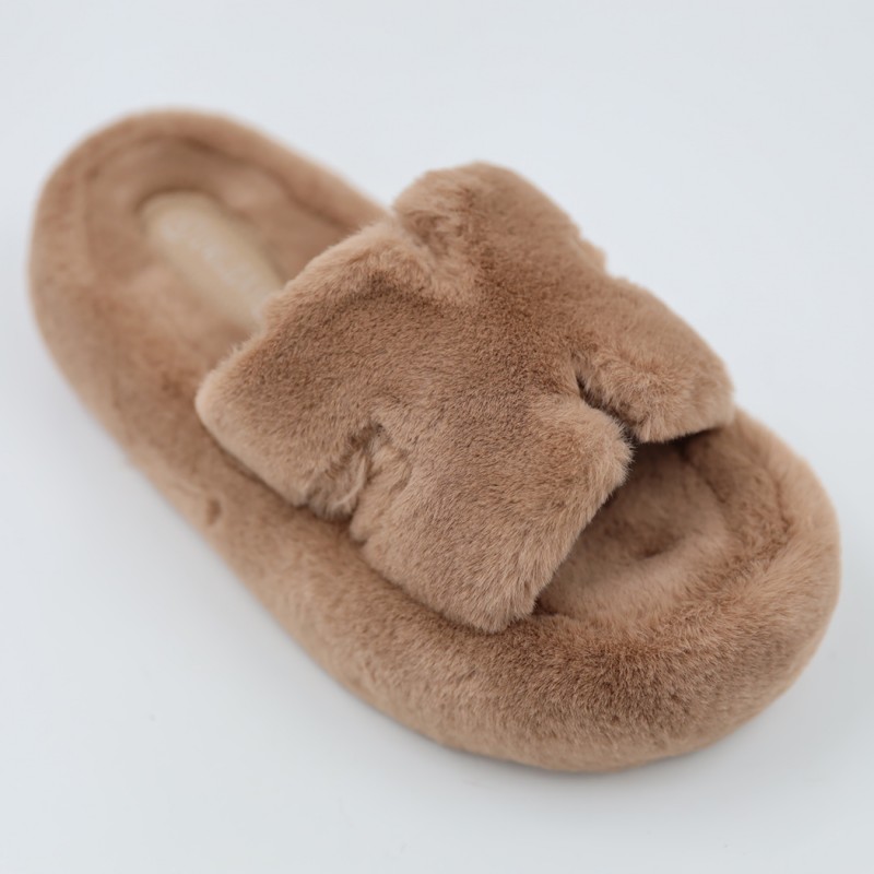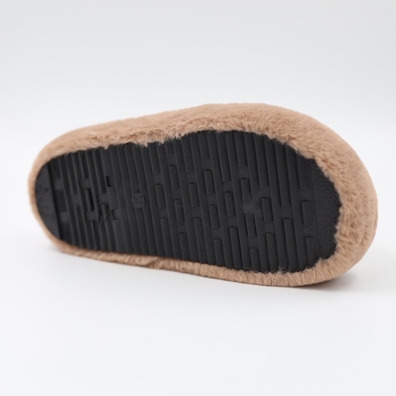 حذاء مبطن فرو بنعل عريض للنساء لون بني فاتح