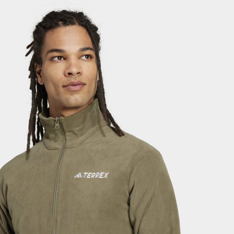 When the day starts cool or the upper elevations demand a layer, this adidas fleece jacket is the versatile layer you can wear on the trail or layer up with for warmth anytime. The brushed polar fleece has an extra-soft feel for next-to-skin comfort. This product is made with 100% recycled materials. By reusing materials that have already been created, we help to reduce waste and our reliance on finite resources and reduce the footprint of the products we make.