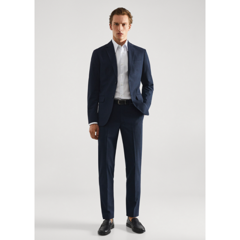 إذا كنت تبحث عن جاكيت بدلة يمنحك أناقة رسمية بلمسة عصرية وراحة طوال اليوم، فهذا الجاكيت من Mango هو الخيار المثالي. يتميز بتصميم Slim Fit أنيق مع قماش مرن Stretch Fabric يوفر حرية حركة ممتازة، إضافة إلى نقشة مطبوعة دقيقة تضيف عمقًا وفخامة إلى اللون الكحلي الداكن.