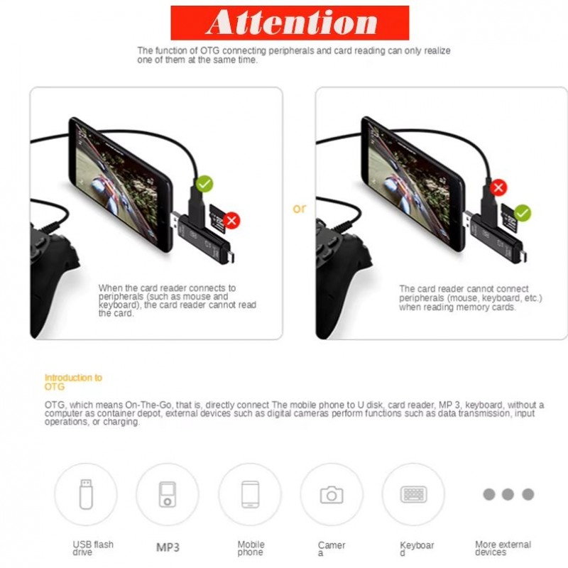 قارئ بطاقات 5 في 1 للجوال واللابتوب متعدد الوظائف USB 2.0 / Micro USB / Type-C OTG لبطاقات TF لسهولة وسرعة نقل البيانات.
