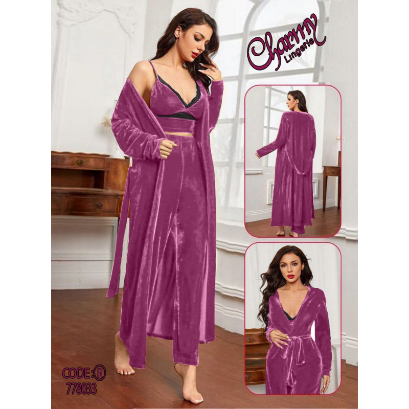 طقم "شارمي" النسائي - 3 قطع من المخمل الناعم