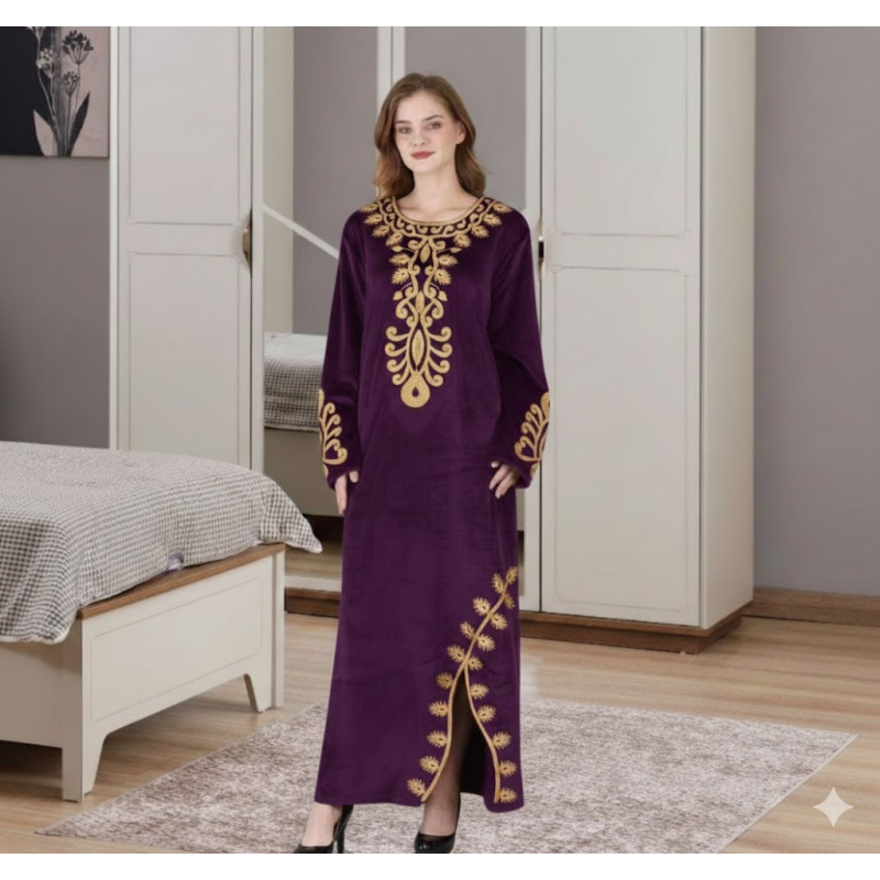 دشداشة مخمل ستاتي لون خمري