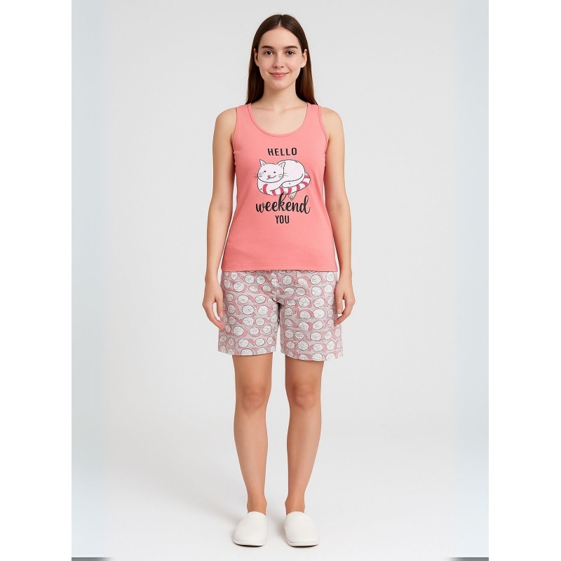 بجامة حفر عريض مع شورت باللون البطّيخي