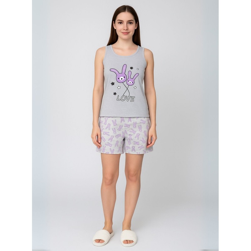 بجامة حفر عريض مع شورت لون رمادي بتصميم أرنب