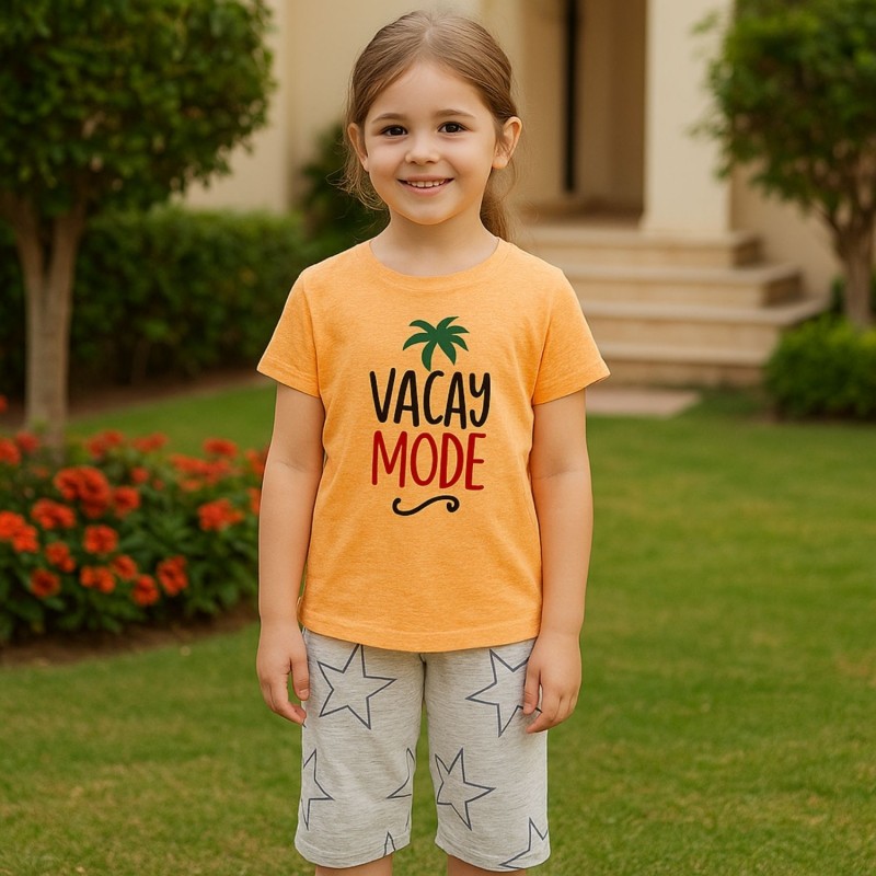 ✅ بيجامة صيفية بناتية لون برتقالي وسكني فاتح