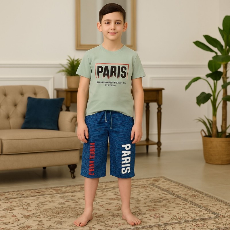 بيجامة صيفية ولادي لون فستقي وأزرق