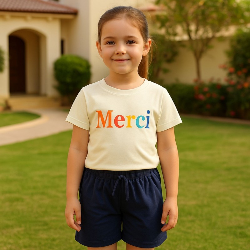 ✅ اللون: تيشيرت أصفر بارد وشورت كحلي.