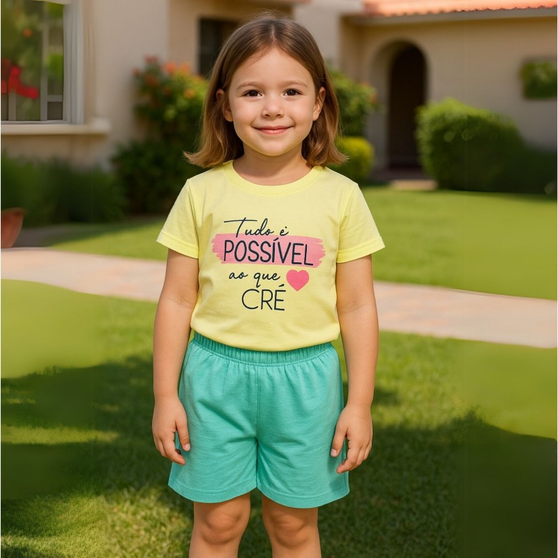 طقم قطعتين تيشيرت وشورت للأطفال لون أصفر وأخضر