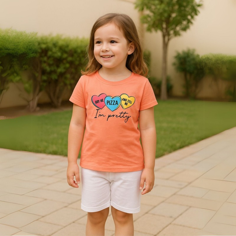 طقم قطعتين تيشيرت وشورت للأطفال لون زهري وبنفسجي فاتح