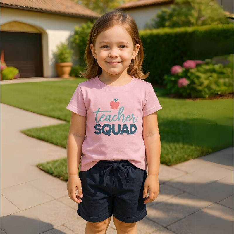 ✅ اللون: تيشيرت زهري وشورت كحلي.