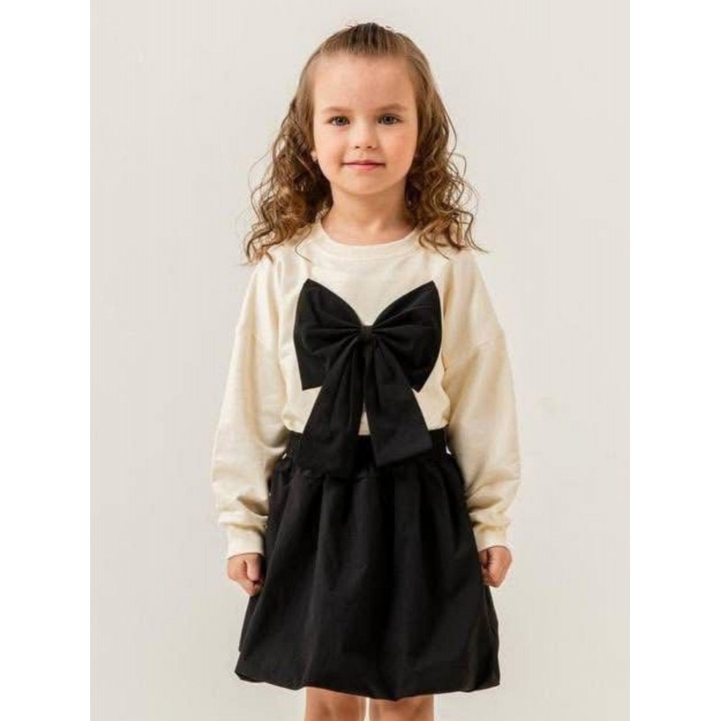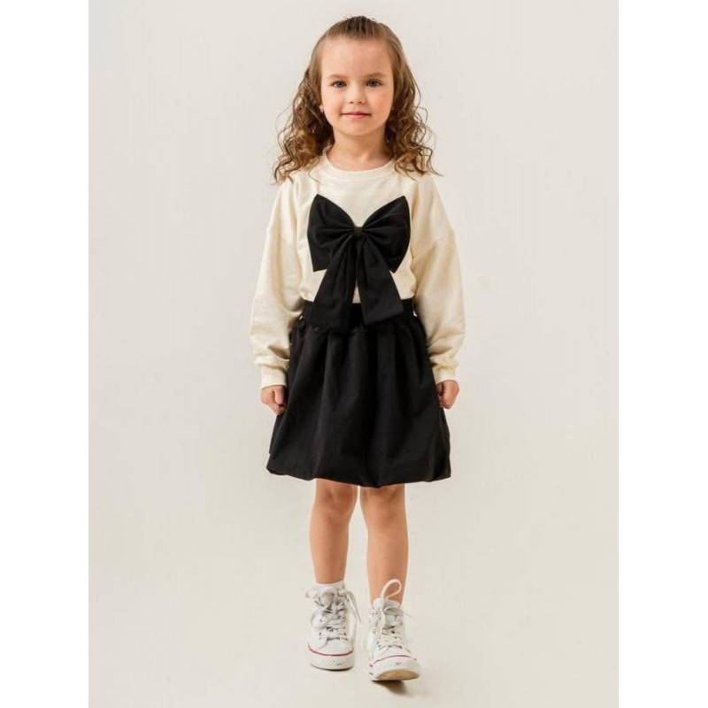 طقم بناتي فستان وتنورة أبيض وأسود
