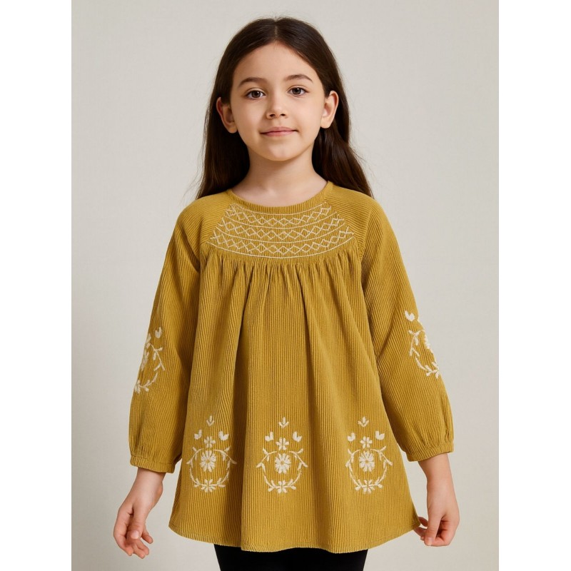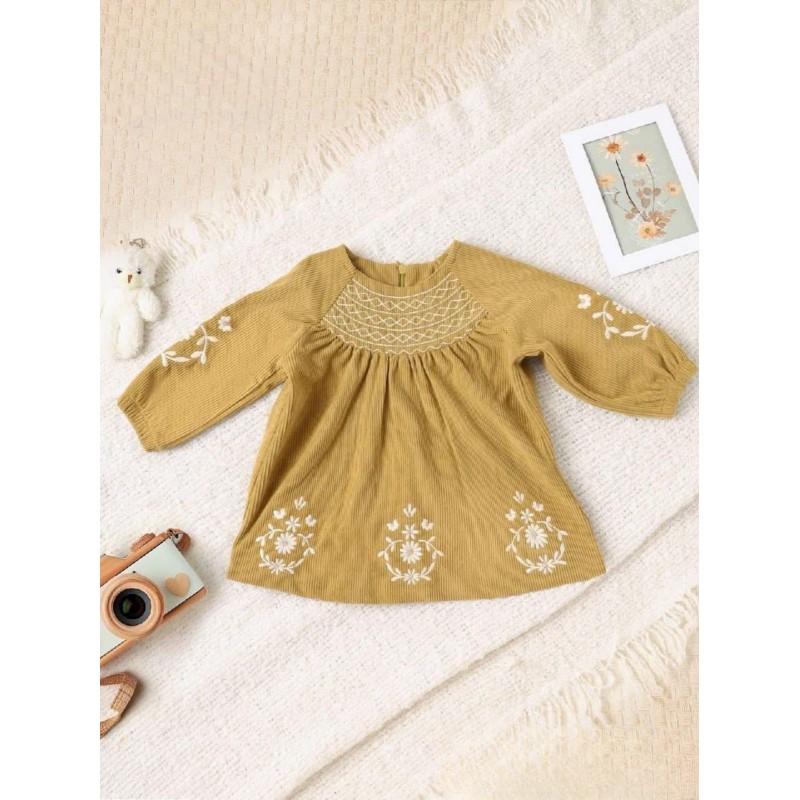 فستان بناتي بأكمام طويلة لون زيتي