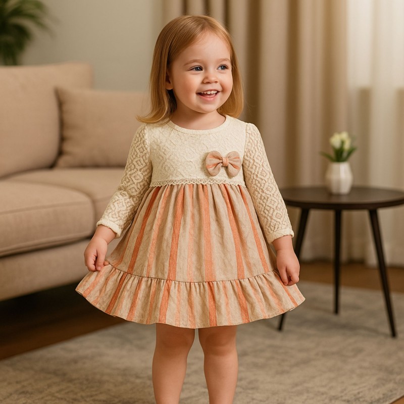 ✅ اللون: مزيج من الوف وايت وبيج، حيث يضيف اللون الأوف وايت لمسة من البراءة والنعومة، بينما يوفر البيج إطلالة حيوية ومشرقة.