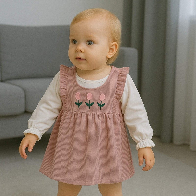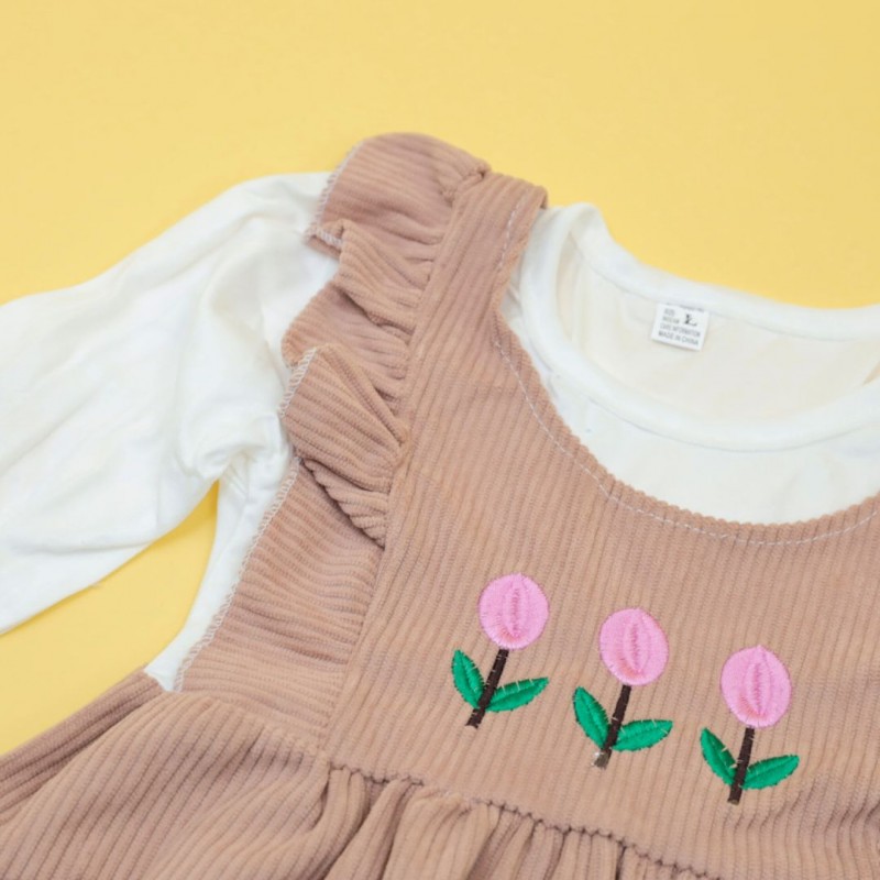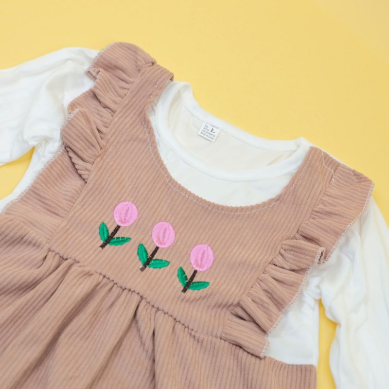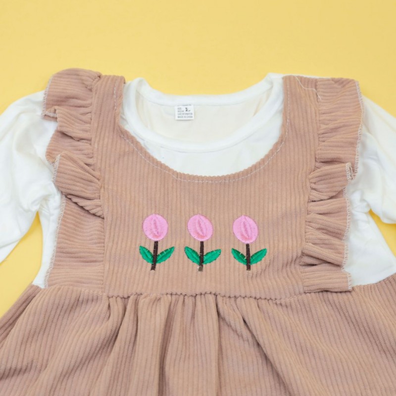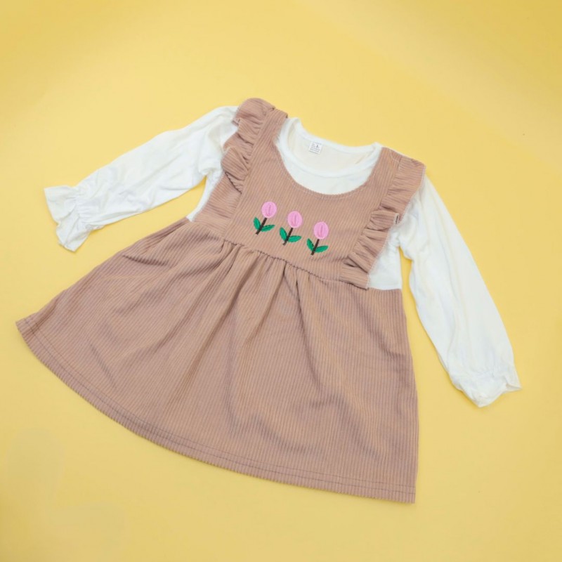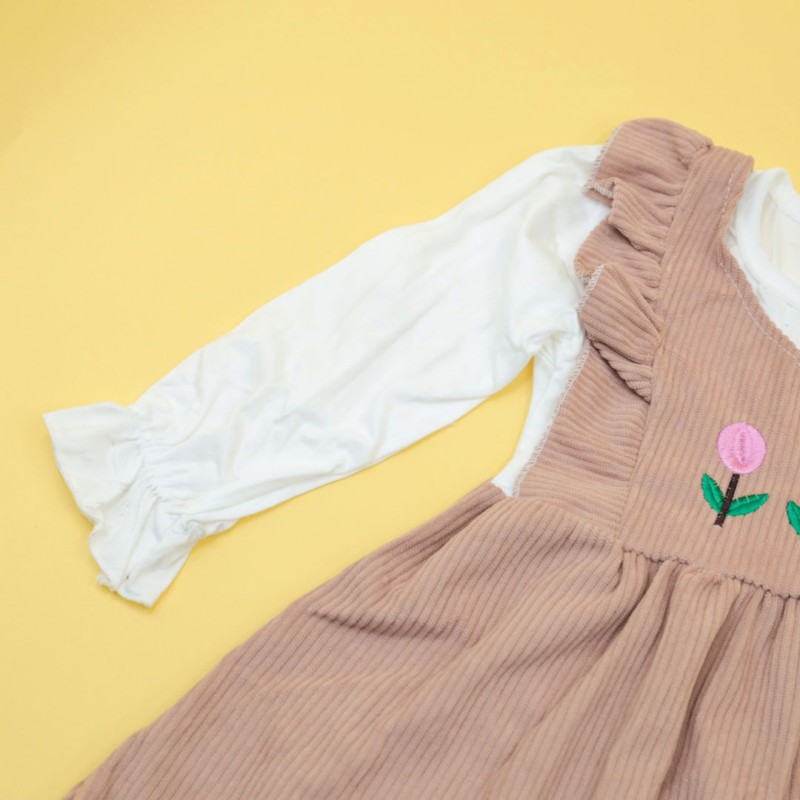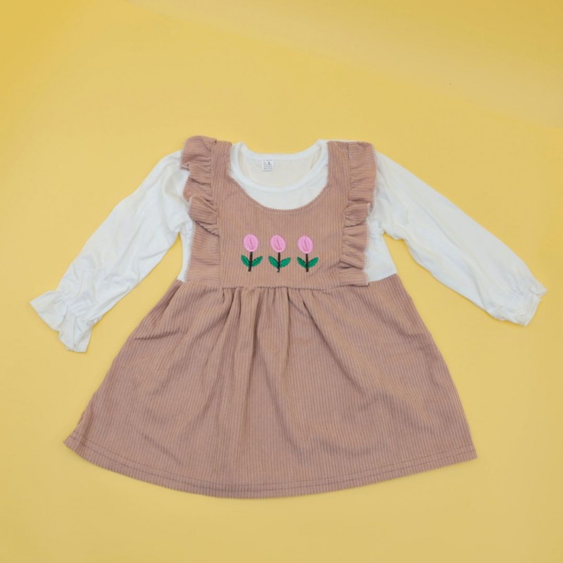 فستان للأطفال لون بيج وأبيض