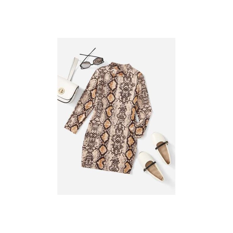 فستان بناتي لون جلد الحية بني