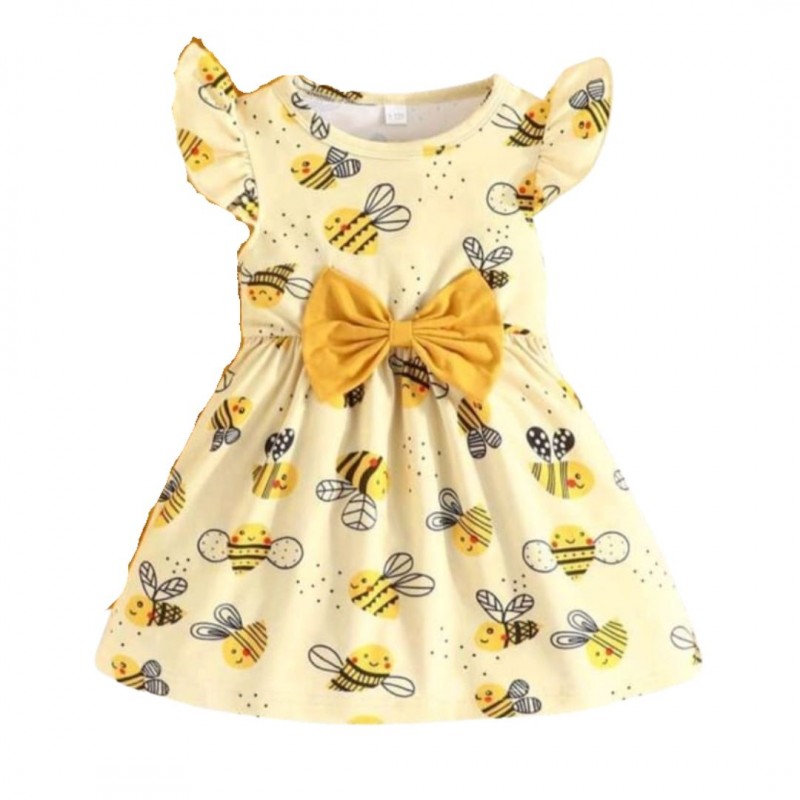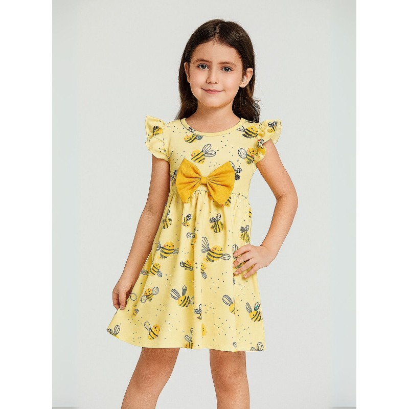 فستان نص كم بناتي لون أصفر برسومات نحلة