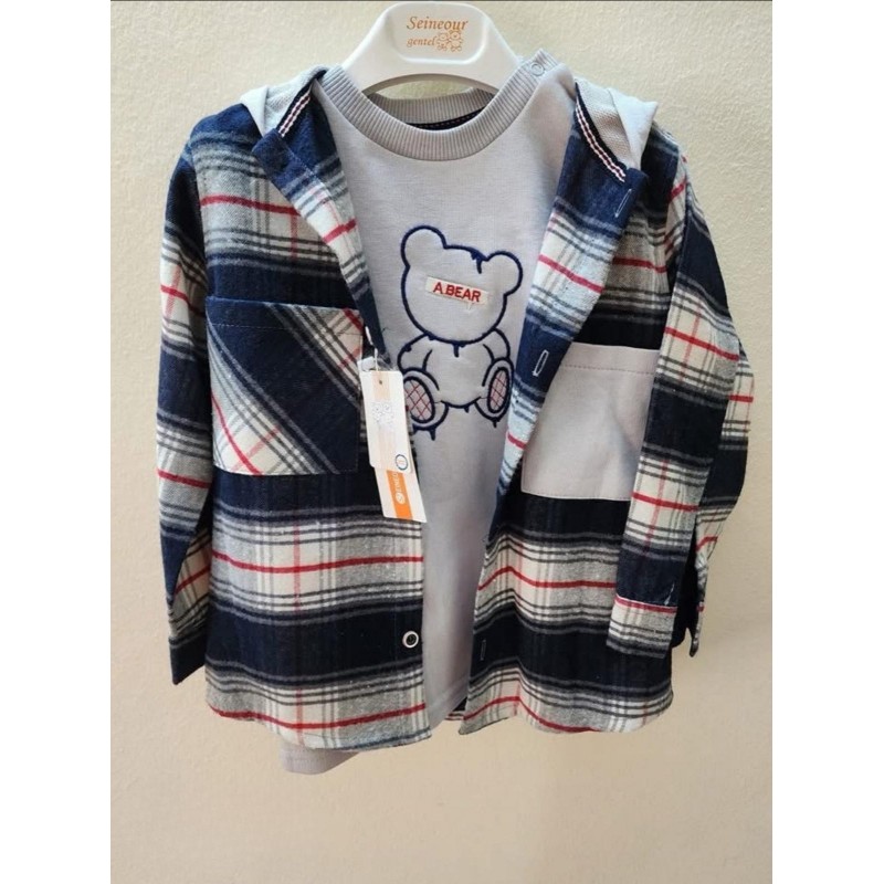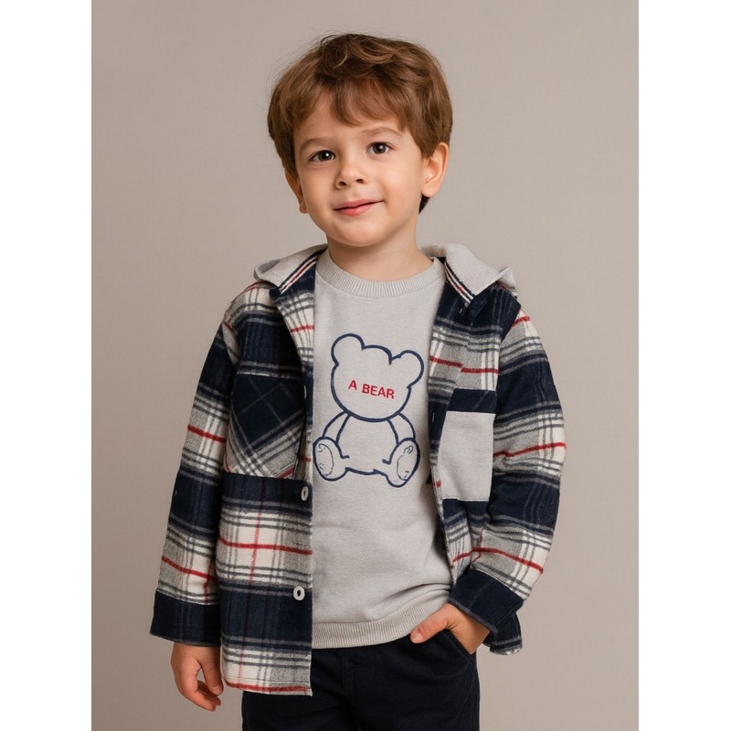 جاكيت ولادي بأزرار وأكمام طويلة لون سكني