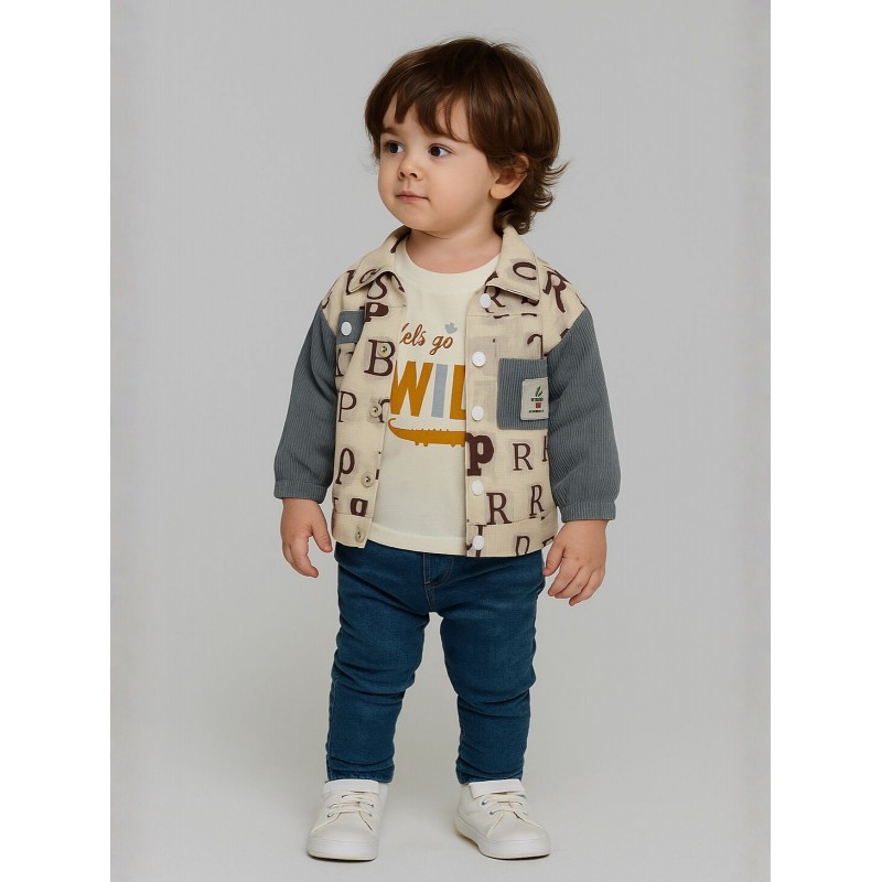 جاكيت ولادي بأزرار وأكمام طويلة لون ازرق