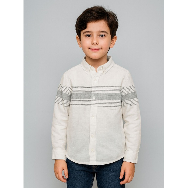 جاكيت ولادي بأزرار وأكمام طويلة للأطفال لون أبيض وأخضر