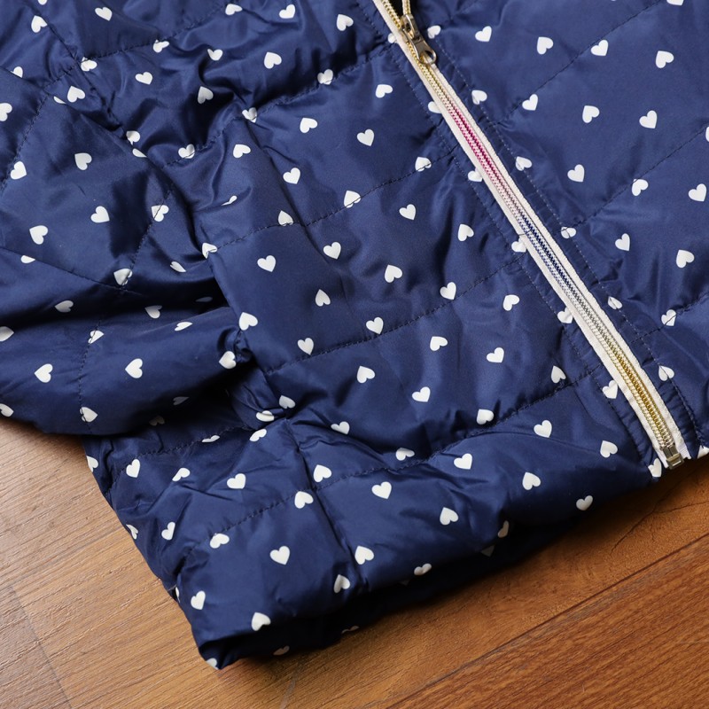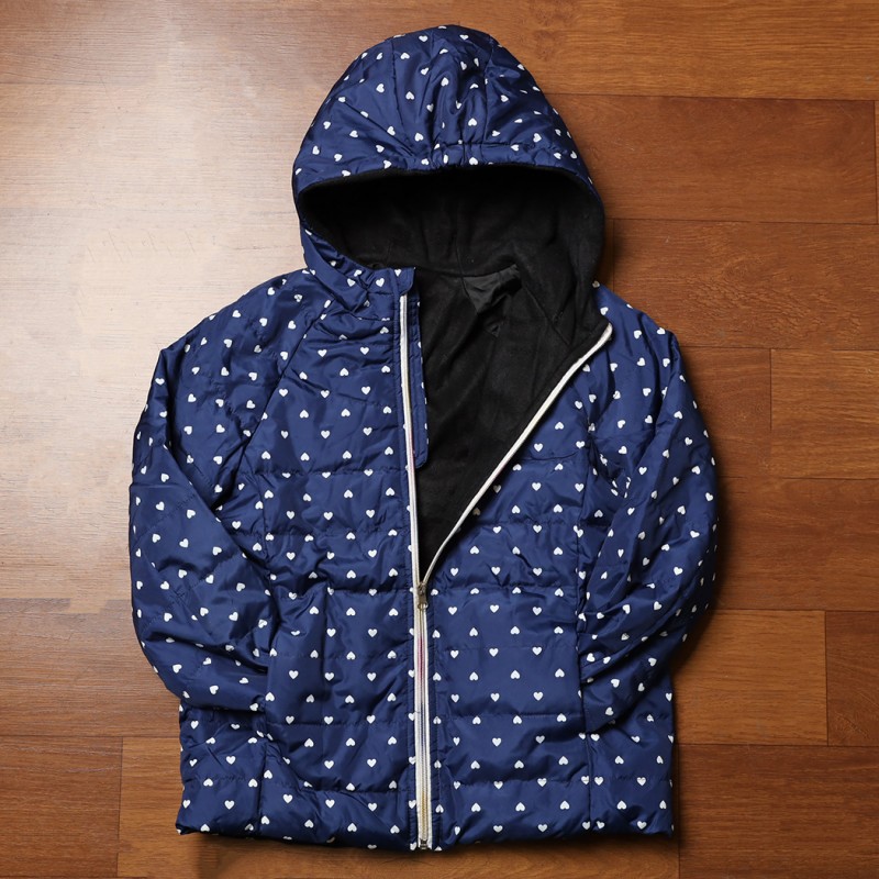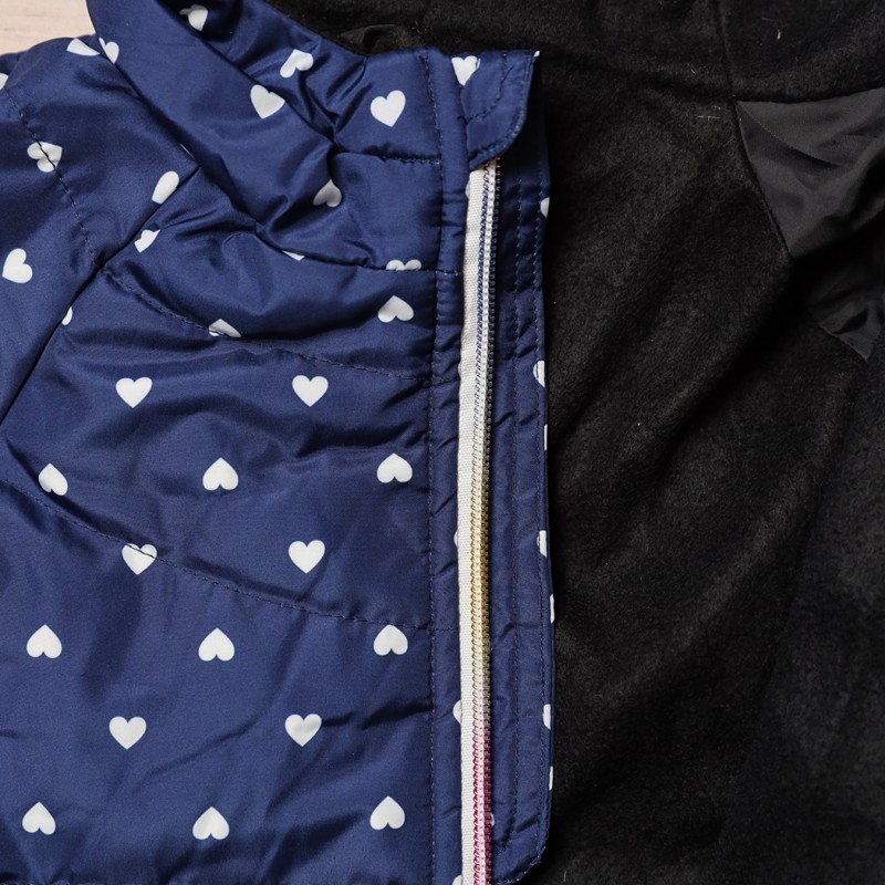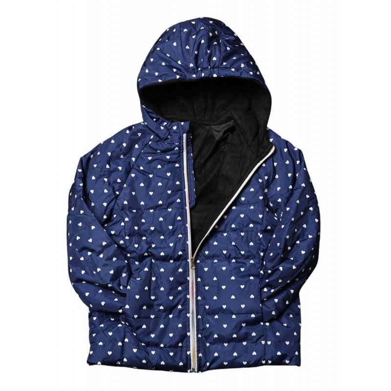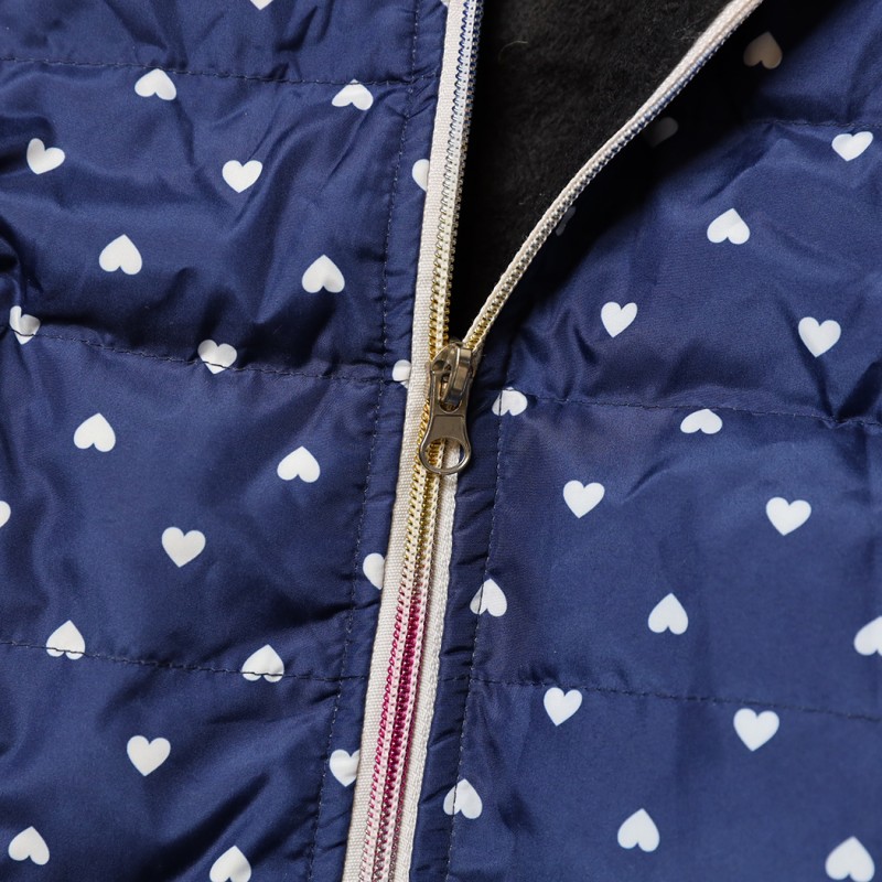 سترة شتوية بطاقية للأطفال لون كحلي برسومات قلب أبيض