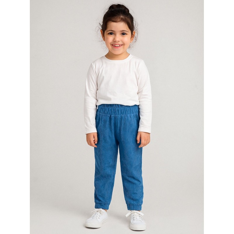 بنطلون مخمل بناتي خصر مطاطي لون أزرق بترولي