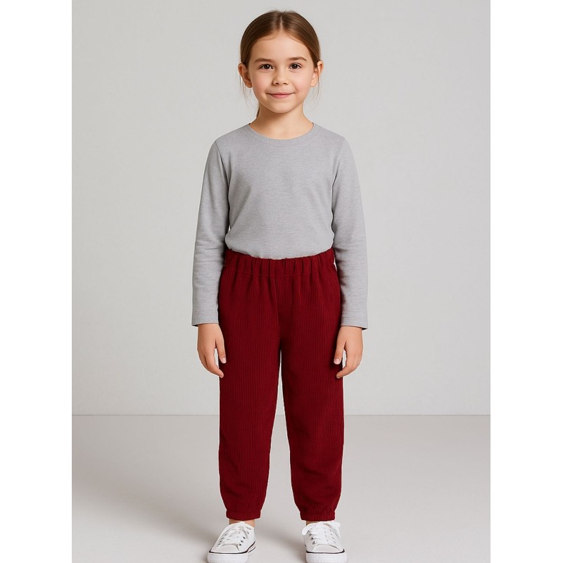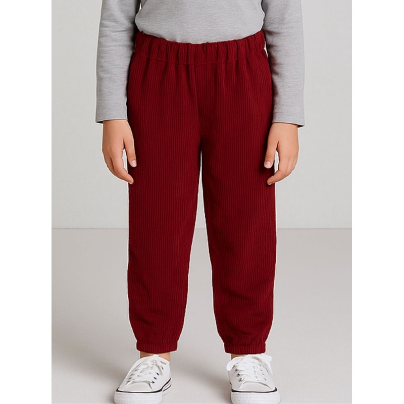 بنطلون مخمل بناتي خصر مطاطي لون خمري