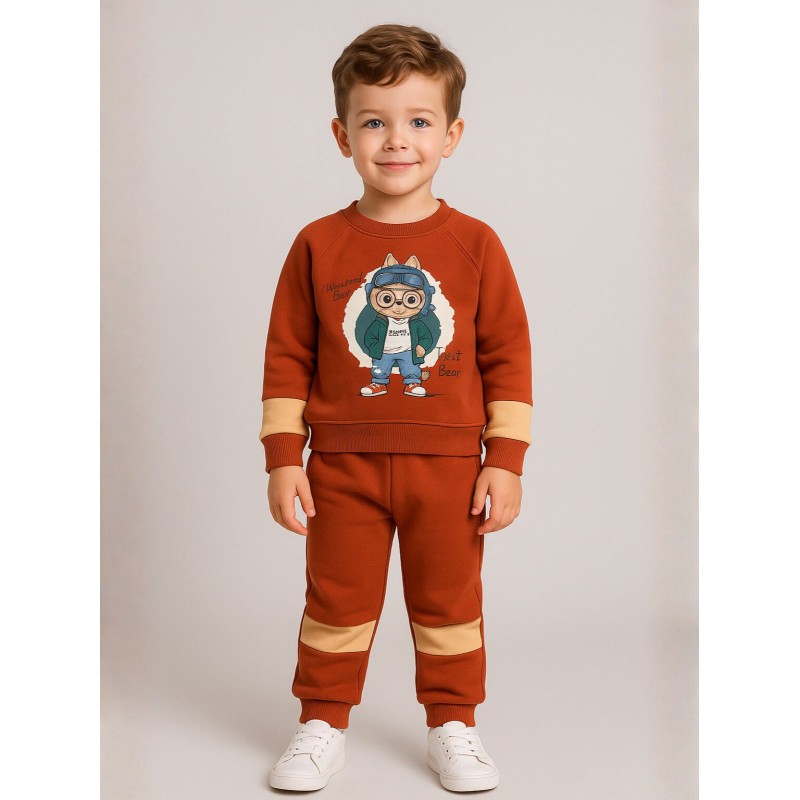 طقم بيجامة قطعتين للأطفال لون بني