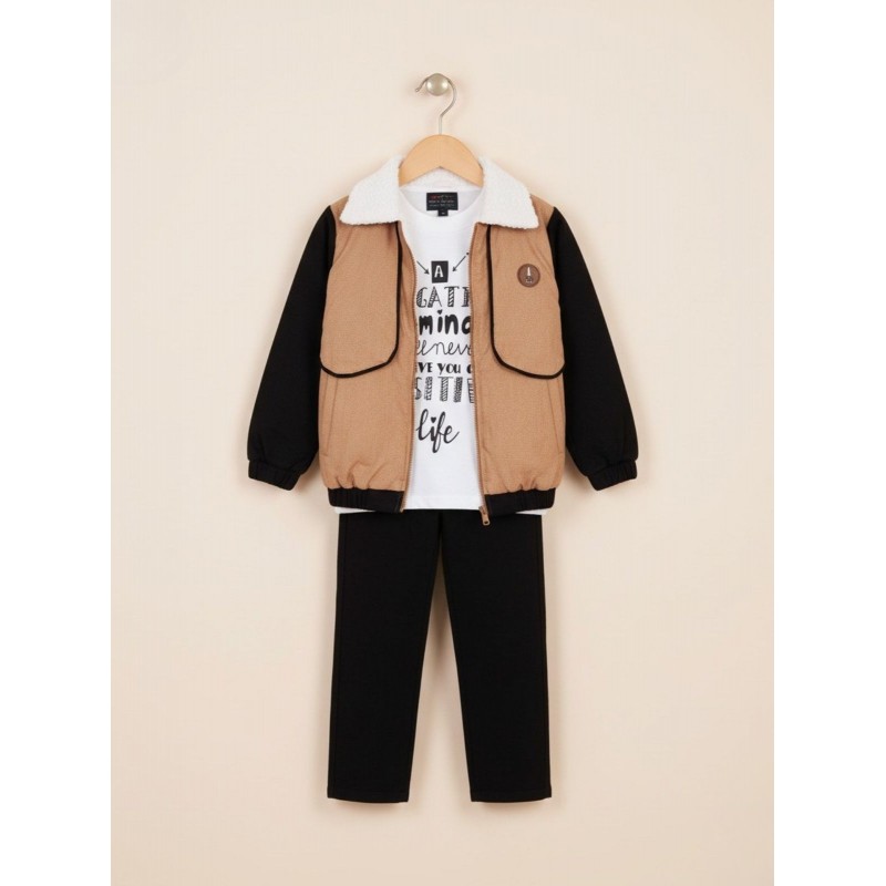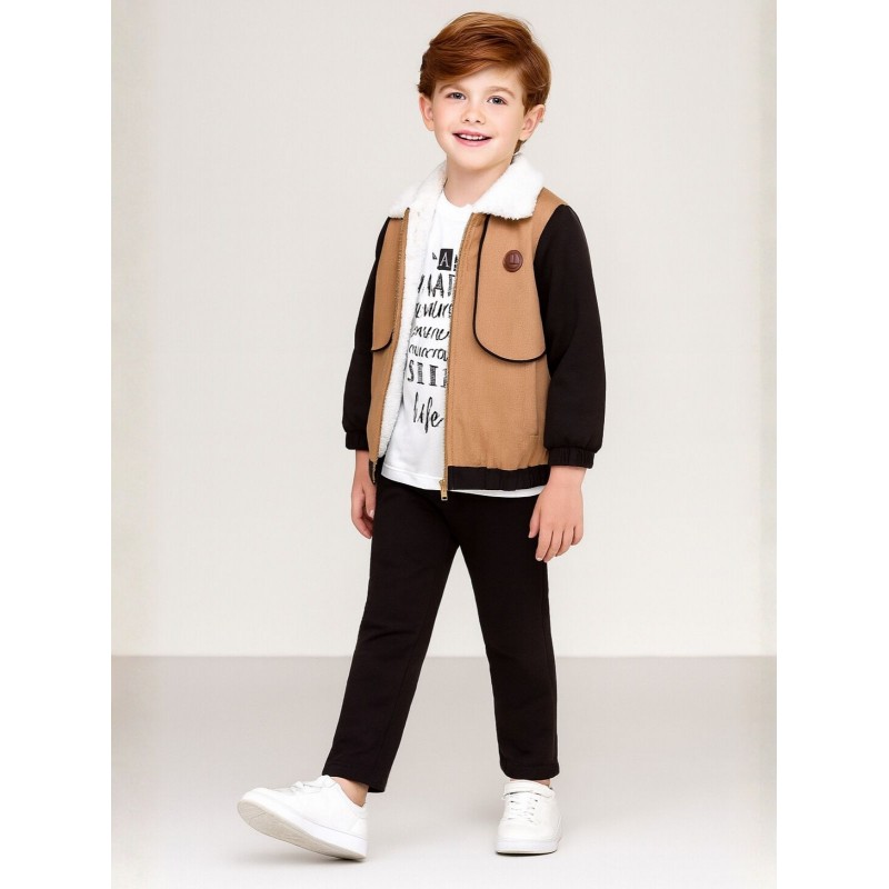 طقم ولادي جاكيت وبنطلون لون عسلي