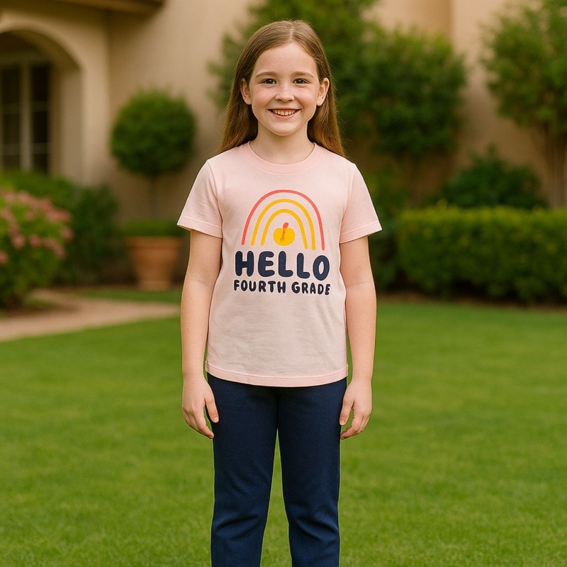 بجامة صيفية للأطفال لون زهري فاتح وكحلي بتصميم تفاحة صغيرة