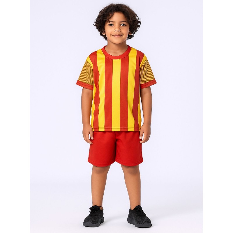طقم رياضي (تيشيرت وشورت) للأطفال لون مخطط طولي أحمر وأصفر