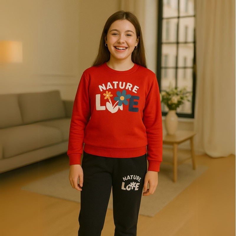 بجامة فوتر شتوية (قطعتين) للأطفال لون أحمر وكحلي