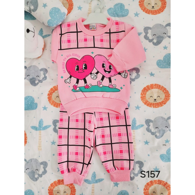 وصف المنتج: بيجامة بناتي بتصميم قلب – لون زهري