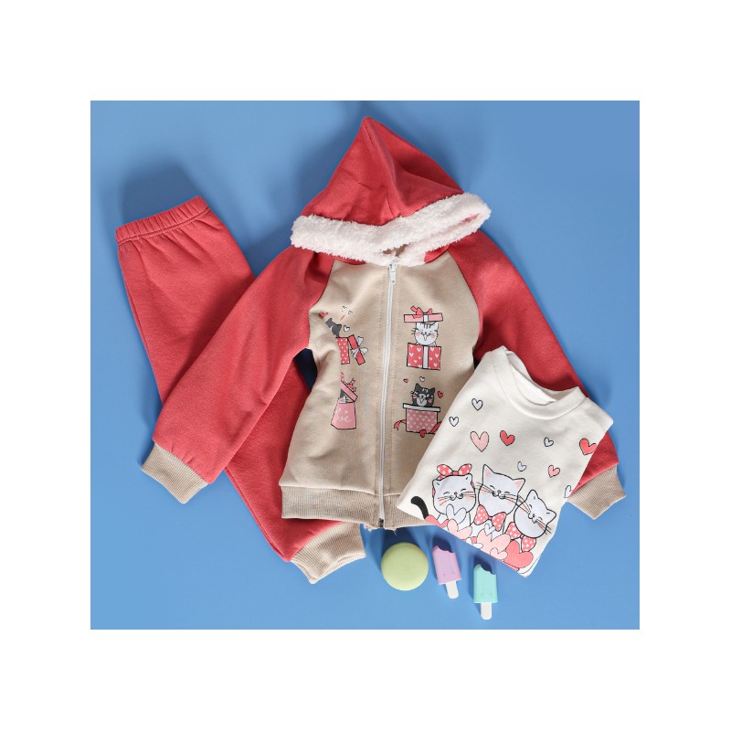 بجامة شتوية 3 قطع للأطفال لون زهري وبيج من Sami Boutique