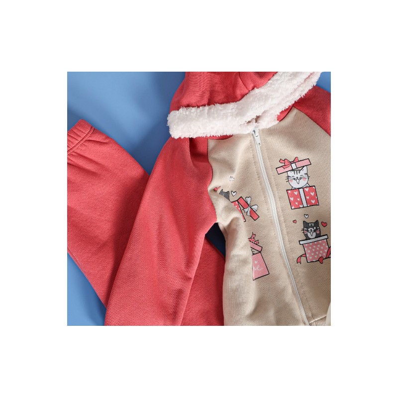 تتكوّن من بنطال مريح، جاكيت بسحاب وقبعة مبطنة، وبلوزة داخلية ناعمة، مما يجعلها مناسبة للاستخدام اليومي داخل المنزل أو أثناء النوم. الخامة ناعمة على بشرة الطفل وتساعد على الحفاظ على الحرارة دون التسبب بالإزعاج.