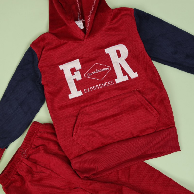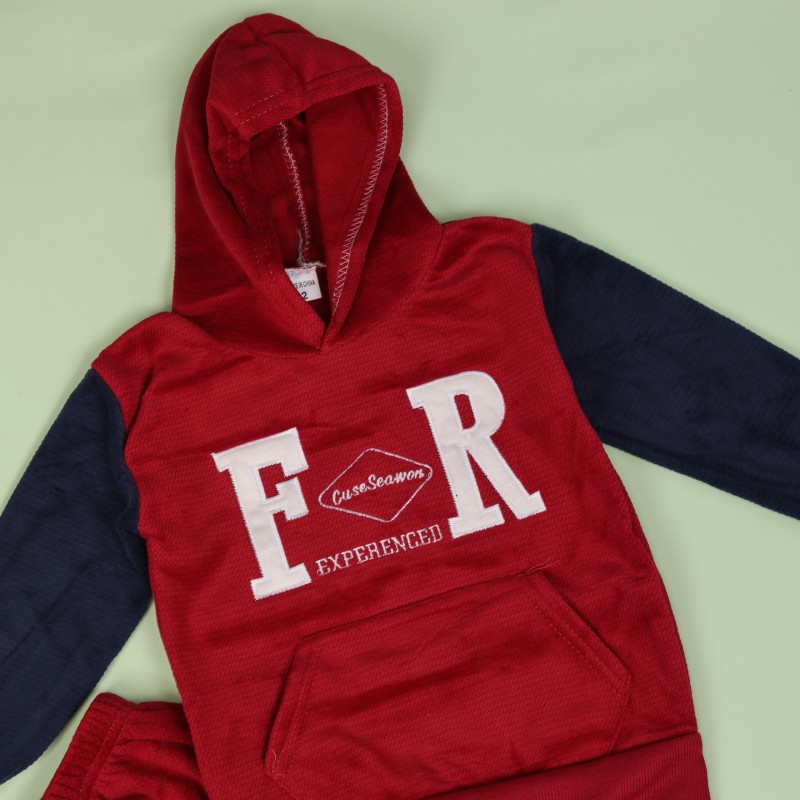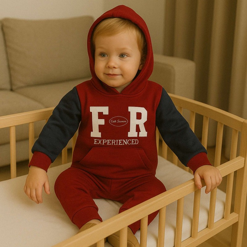 بجامة بأكمام طويلة وطاقية (قطعتين) للأطفال لون خمري وكحلي