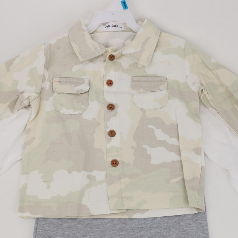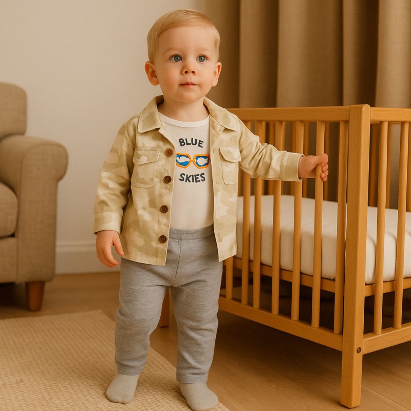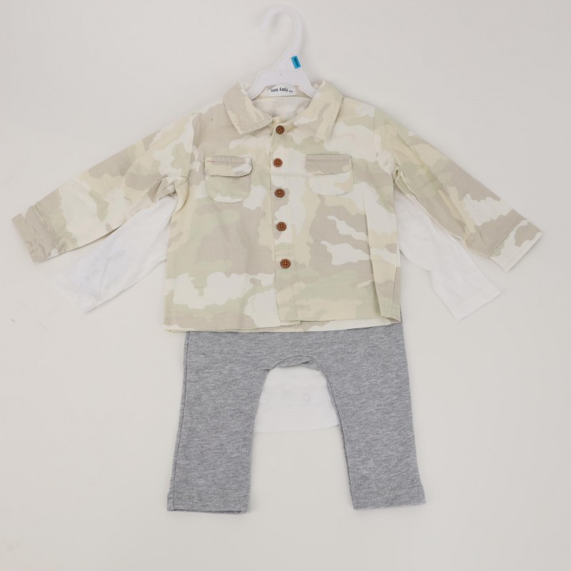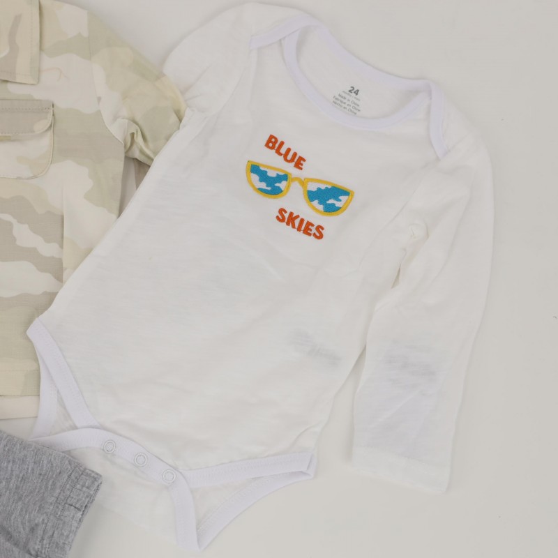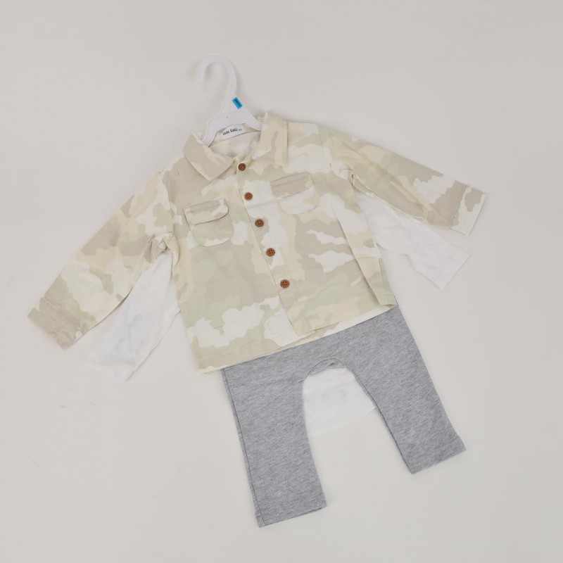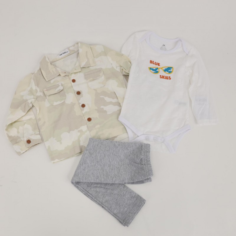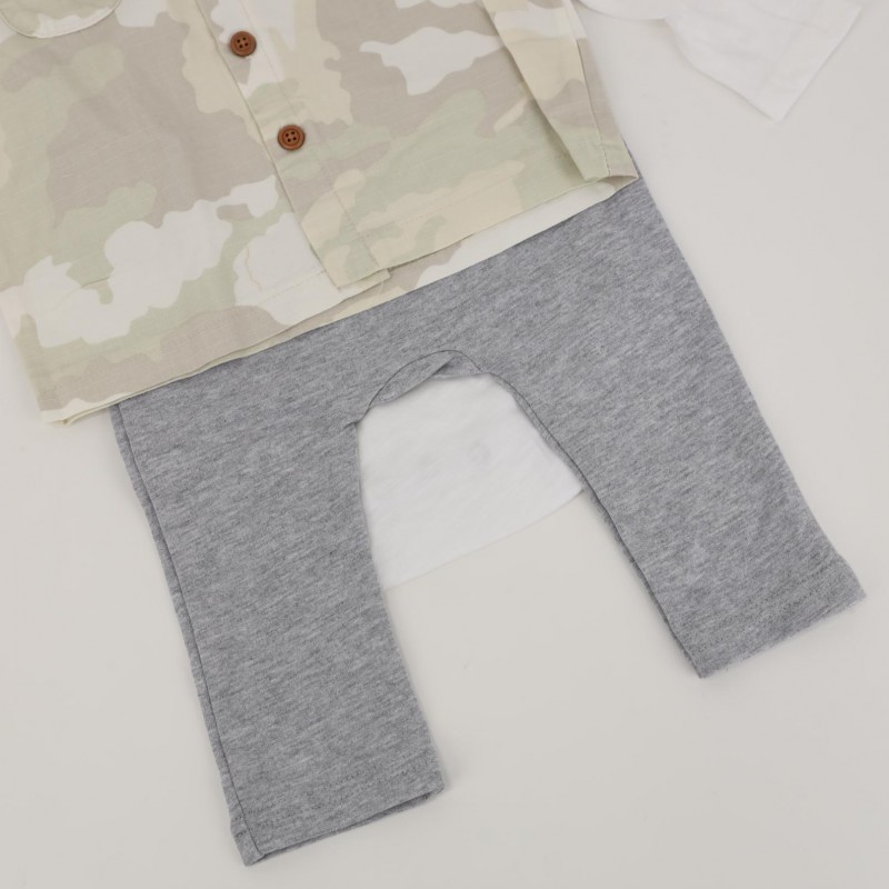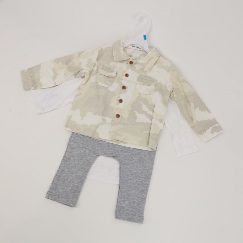 طقم 3 قطع للأطفال لون أبيض وأخضر فاتح
