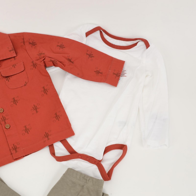 طقم 3 قطع للأطفال لون برتقالي و أخضر