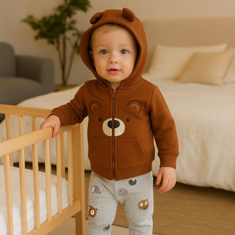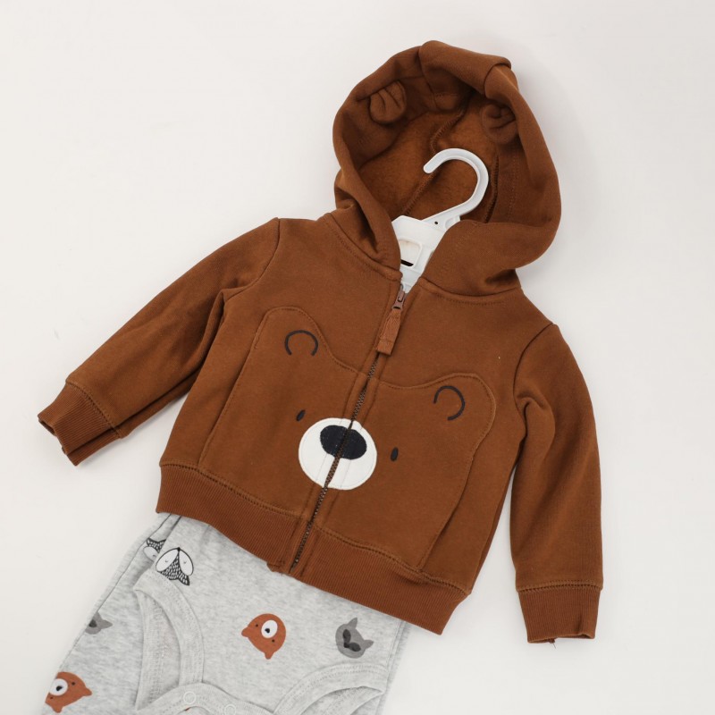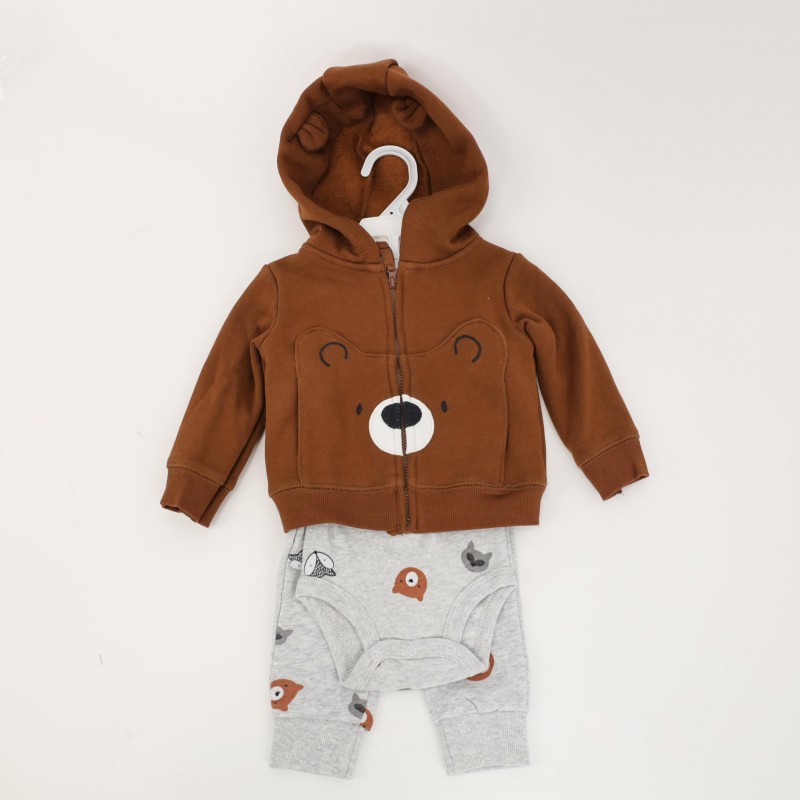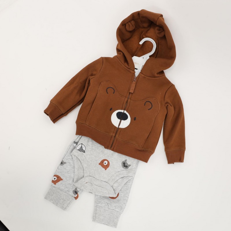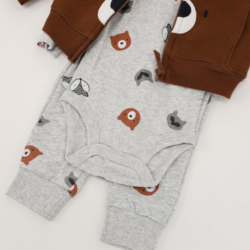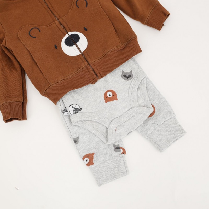 طقم 3 قطع للأطفال لون بني ورمادي