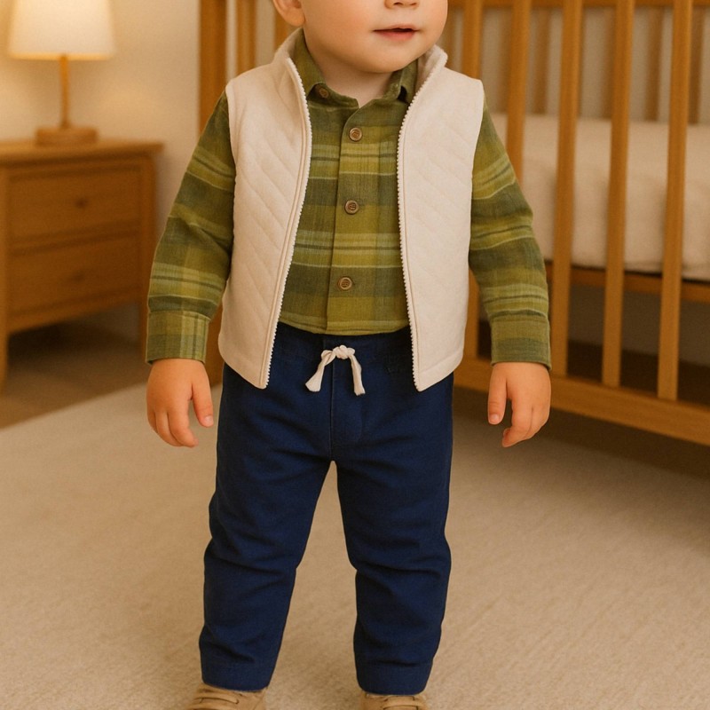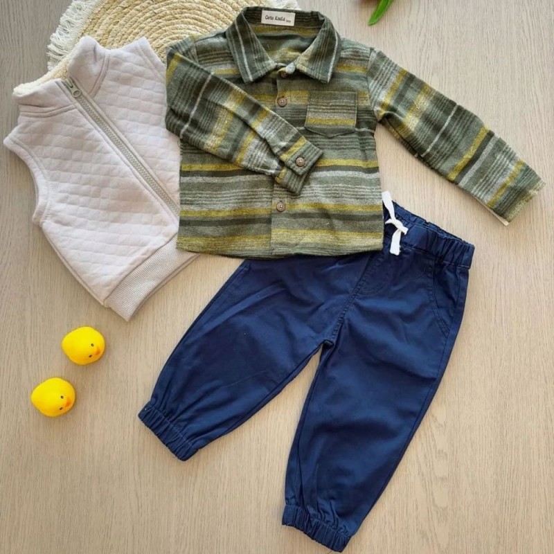 طقم 3 قطع فزت للأطفال لون رمادي و أخضر وأزرق