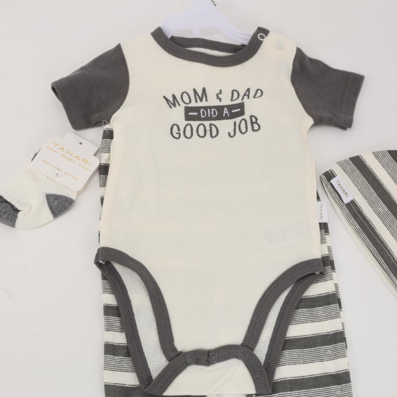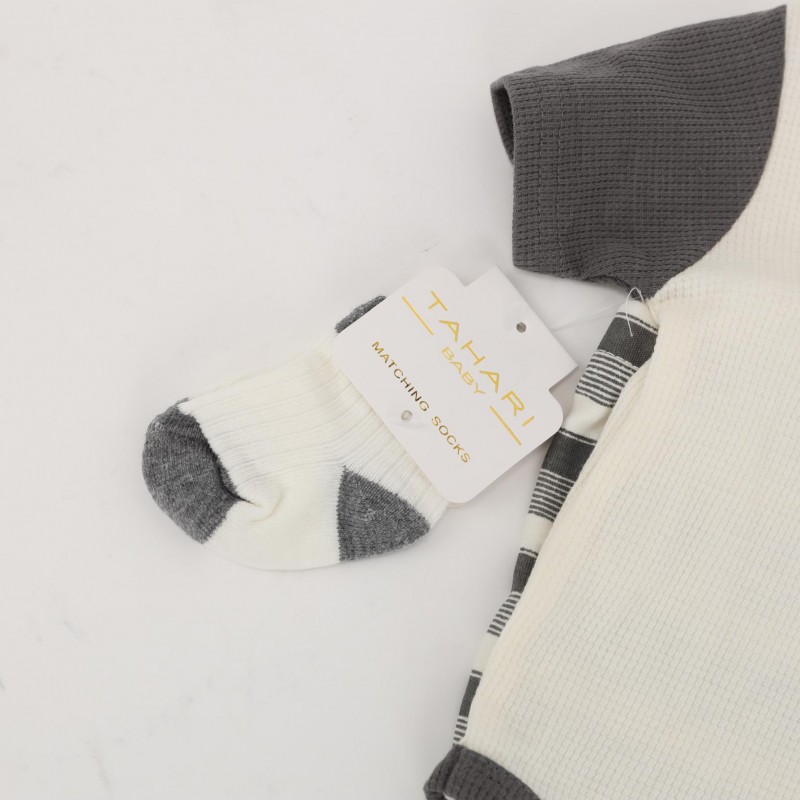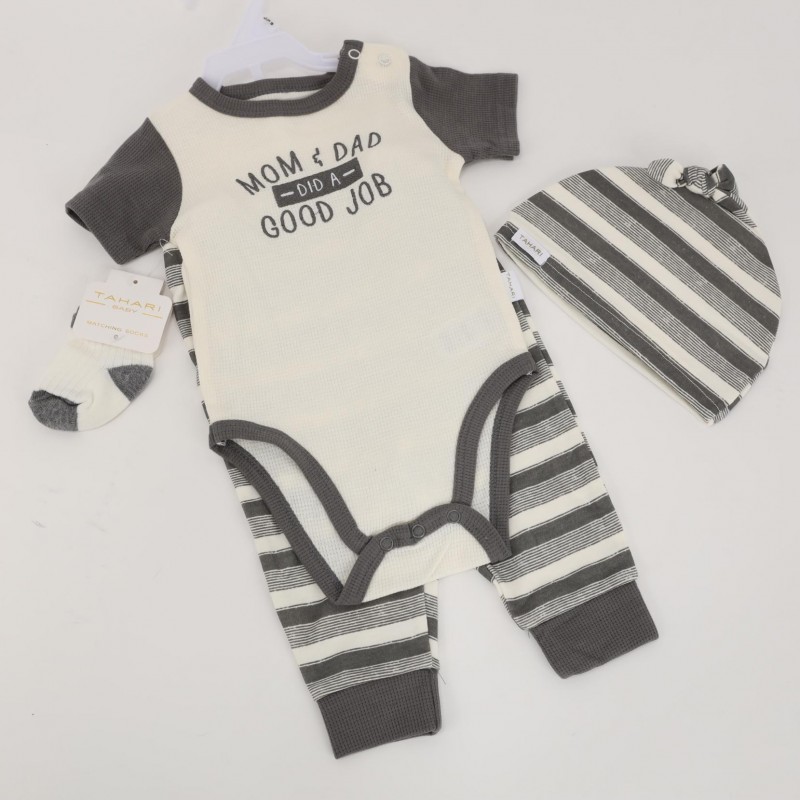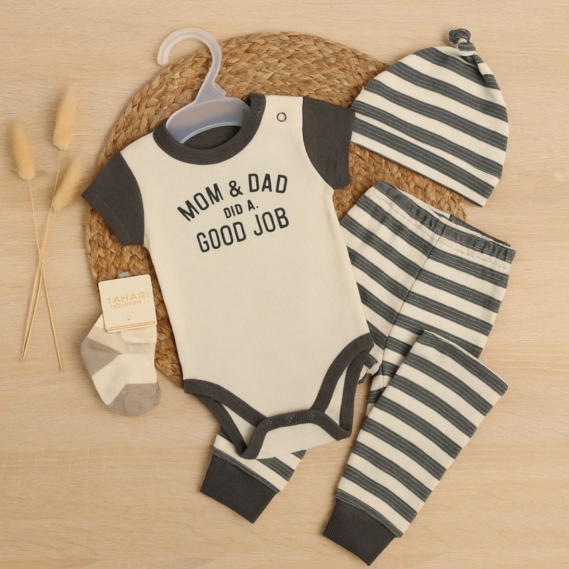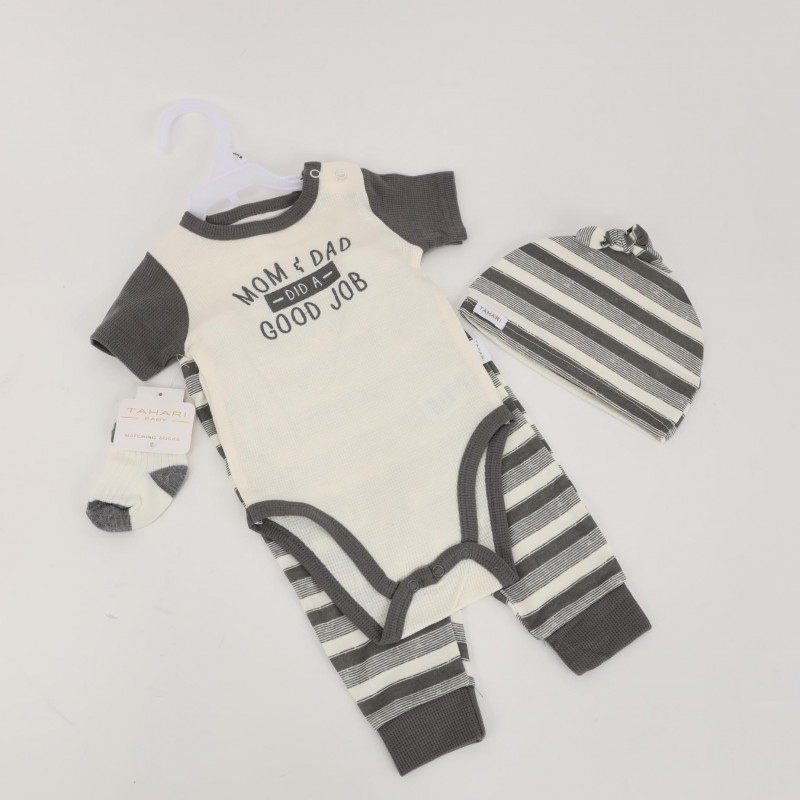 طقم 4 قطع للأطفال لون رمادي و أبيض