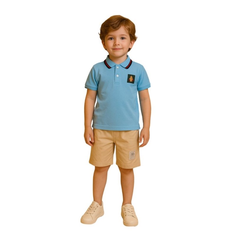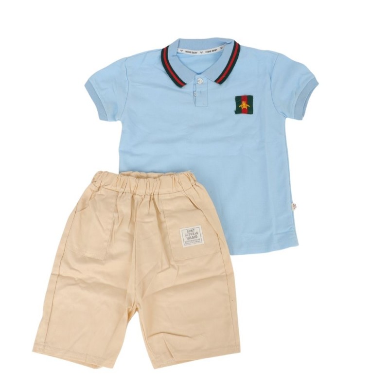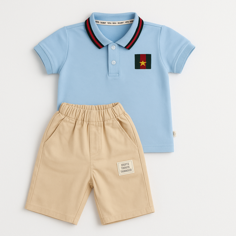 طقم قطعتين للأطفال لون بيج و أزرق