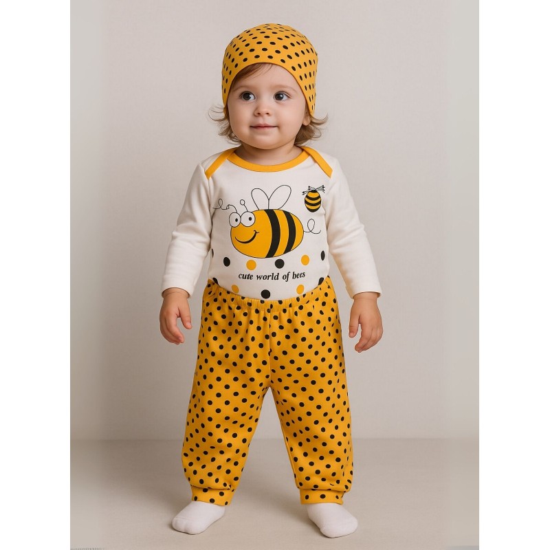 طقم 3 قطع للأطفال لون أصفر و أبيض