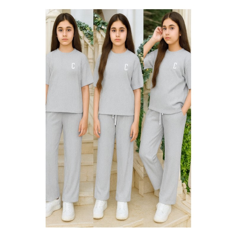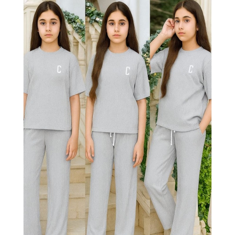 بيجامة صيفية بناتية لون رمادي فاتح