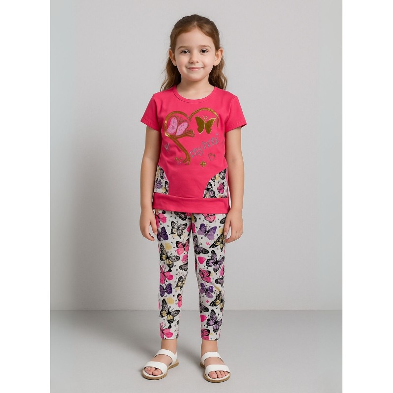 بجامة بناتي قطعتين صيفي لون فوشي
