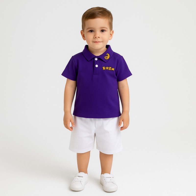 طقم قطعتين بأكمام قصيرة مع شورت للأطفال لون بنفسجي
