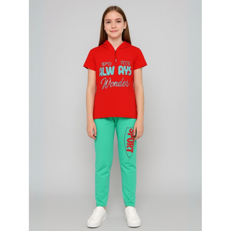 بجامة بناتي بأكمام قصيرة (قطعتين) لون أحمر وأخضر